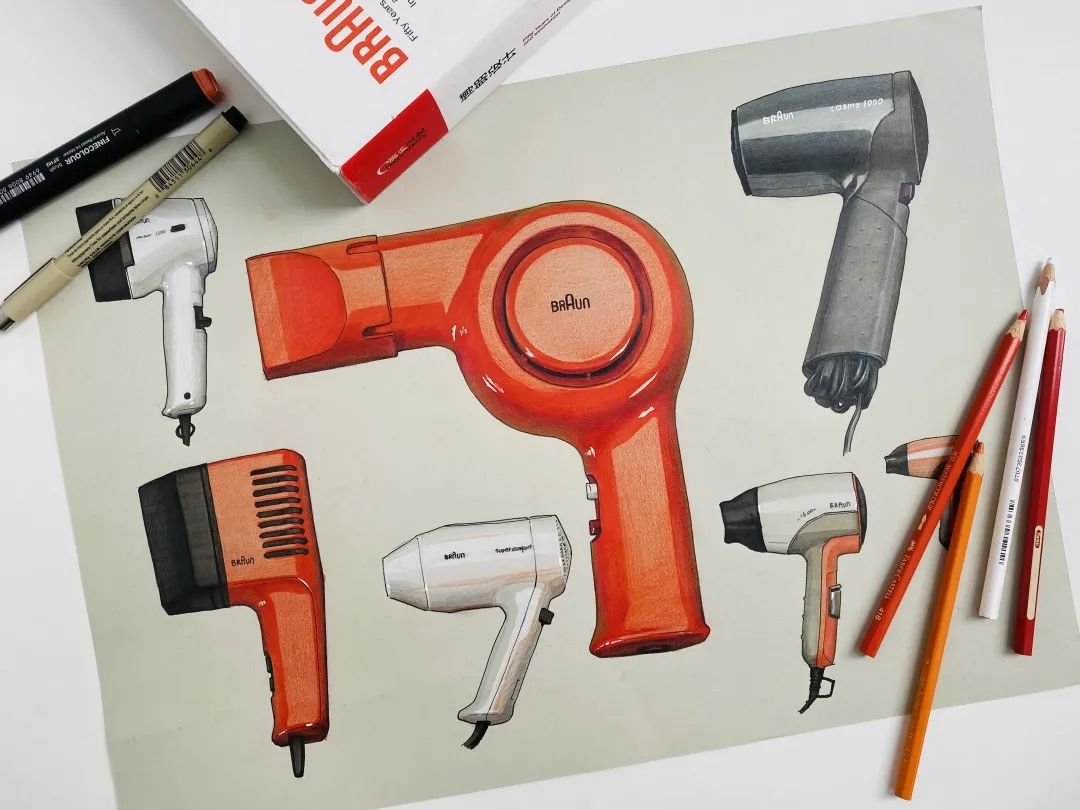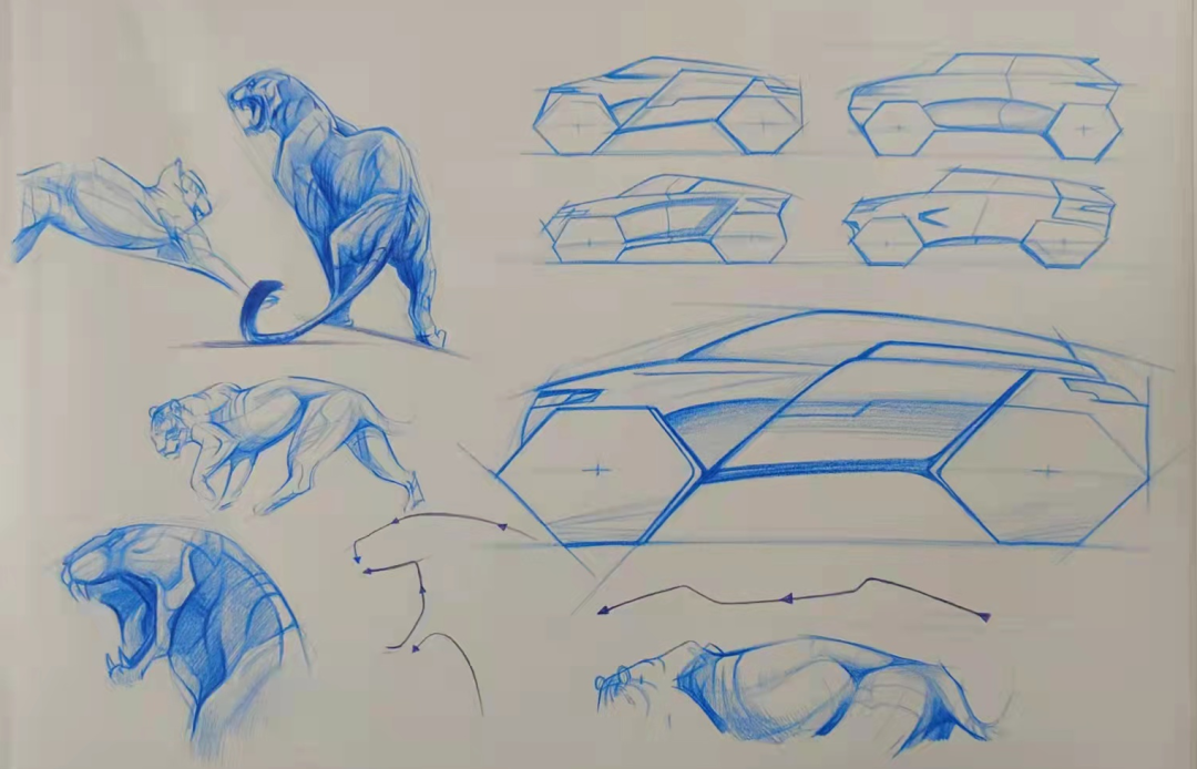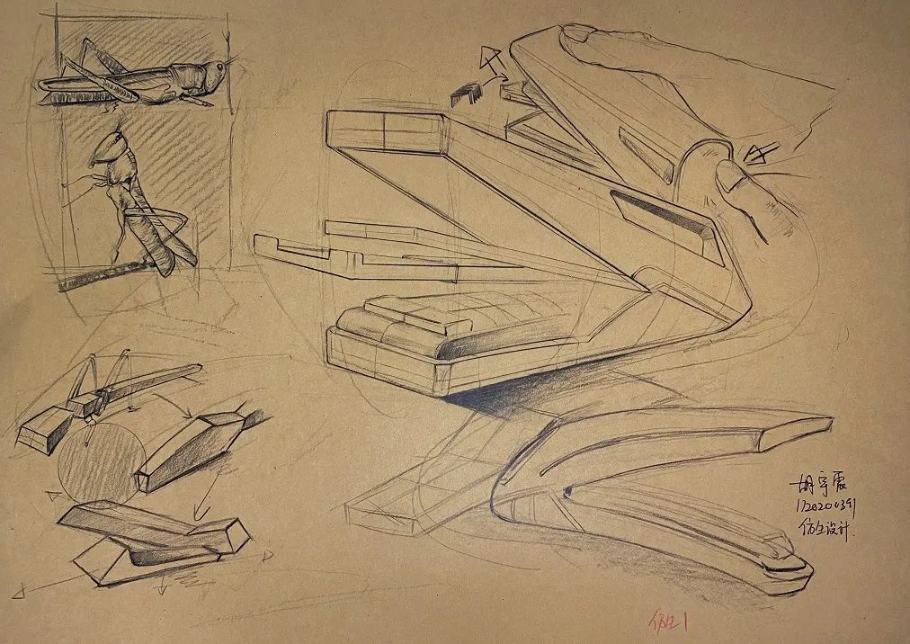 大二上学期的第二门专业课是李平老师的设计表达,这门课老师教给我们很多种设计师在设计产品时绘制草图的手法,穿插课堂的多个维生素练习也十分有趣,拓展了我们想象力。随后的仿生、单一产品速写和衍生等大量的作业锻炼了我的手绘能力,让我又体会到了沉浸式绘画的快乐同时老师为我们提供了非常好的平台,聘请奇点汽车总裁给我们做了深入浅出的讲座,并在课上进行深入的交流。在李平老师的设计表达课上我受益良多,并且会在以后的学习和工作生涯中不断磨练和精进。