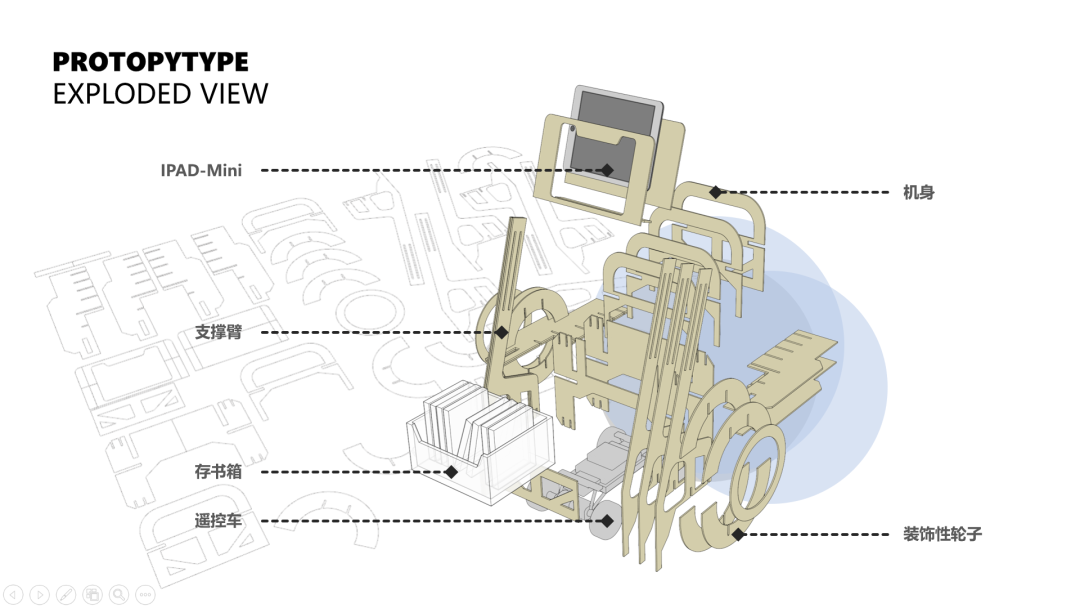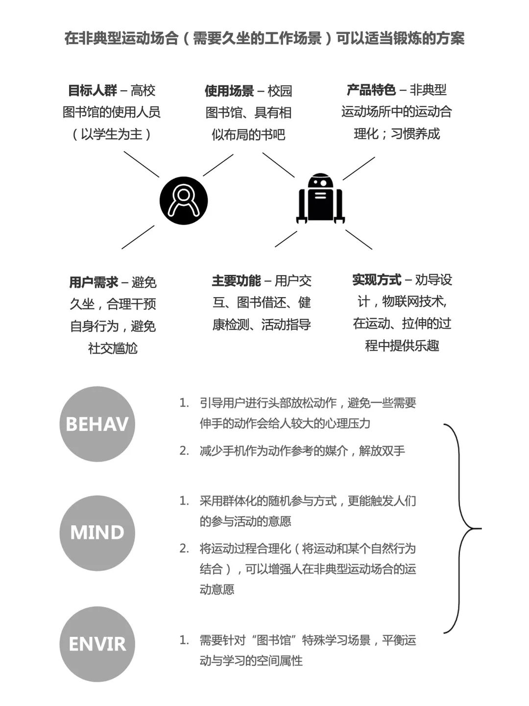 我们设计了Anti-Sedentary Robot还书机器人,通过机器人引导还书的方式来提高图书馆久坐人群的运动意愿。