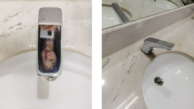 我们设计了显示七步洗手法的智能交互水龙头,通过教学性质的引导来提升用户科学洗手的意愿。在水龙头顶部设计了一个斜面,嵌入了相应的灯光显示,用户在低头洗手时可以轻松自然地看到斜面的指示。