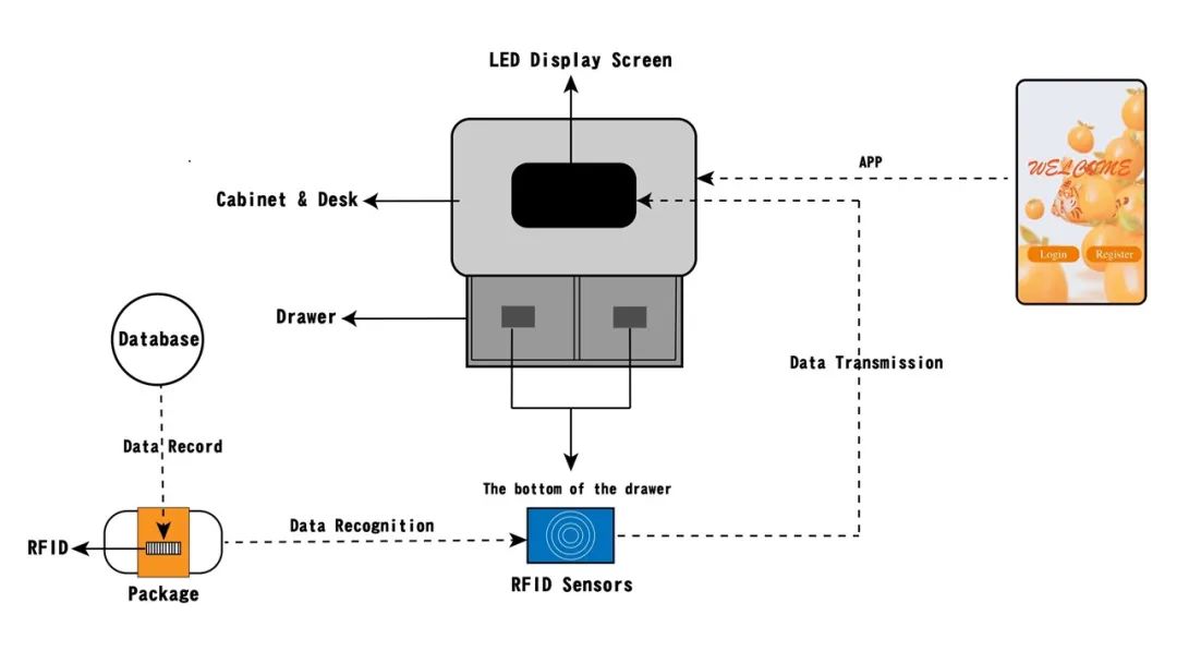VC-Helper是一款围绕宿舍维C摄入改善的服务系统。用户可以通过数字系统制定标准维C量摄入计划与蔬果采购方案,每日蔬果中的维C信息会以电子标签的形式被携带与配送,放置在宿舍内的硬件能够识别标签并记录信息,通过隐喻化的反馈形式和竞争机制促使舍友间的维C摄入,完成营养健康提升目标。