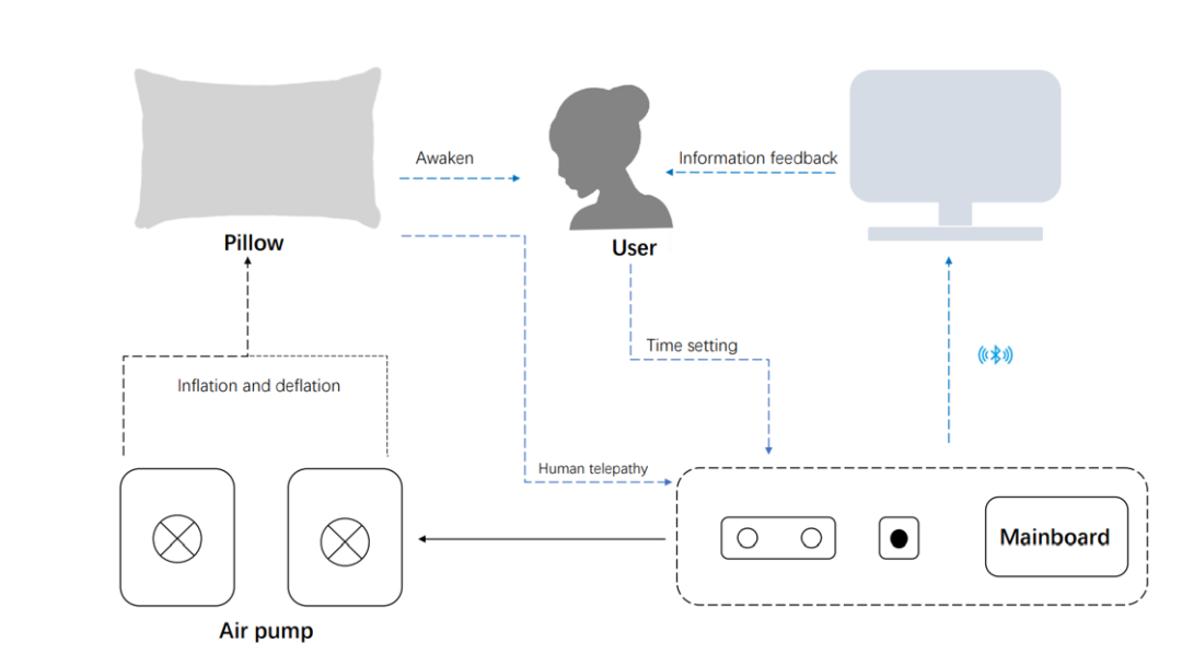睡眠山脉(Sleep Hill)是一款通过“缓慢上升”的轻量化触觉反馈,智能唤醒用户的睡眠枕套。以体贴自然的方式,让人们告别起床的负面情绪。睡眠山脉装有智能感应硬件与充气装置,用户通过实体旋钮预约唤醒时间范围。系统会根据用户睡眠监测,在时间范围内选择合适时机,通过缓慢充气渐进式地将人们唤醒,从而避免不合理睡眠唤醒的不良影响。人们起床一段时间后睡眠山脉能够自动排出内部空气,回到原有状态。睡眠山脉搭载智能芯片和传感器,能够检测睡眠质量并给予睡眠建议。通过网络平台可定制适配于不同枕头的尺寸,让使用更加方便。