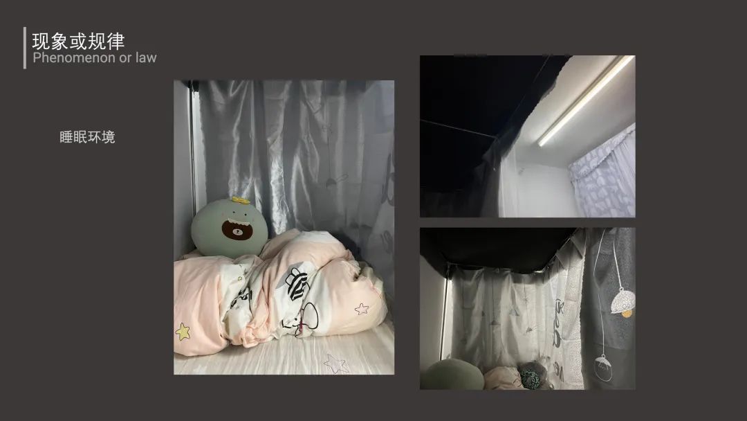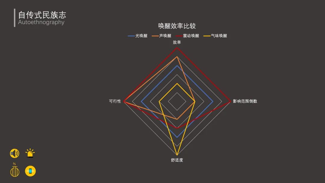 实验发现,入睡相较于起床主观上更易控制,睡过头更容易导致赖床。起床主要面临着唤醒痛苦带来的赖床的问题,影响健康状态的同时还会大大降低早上的工作和生活效率。关于唤醒方式的评估方面,我们发现触觉反馈具有最高的可行性和唤醒效率,但是其舒适性有待优化。给与舒适的触觉睡眠反馈方式将是我们设计概念的核心出发点。