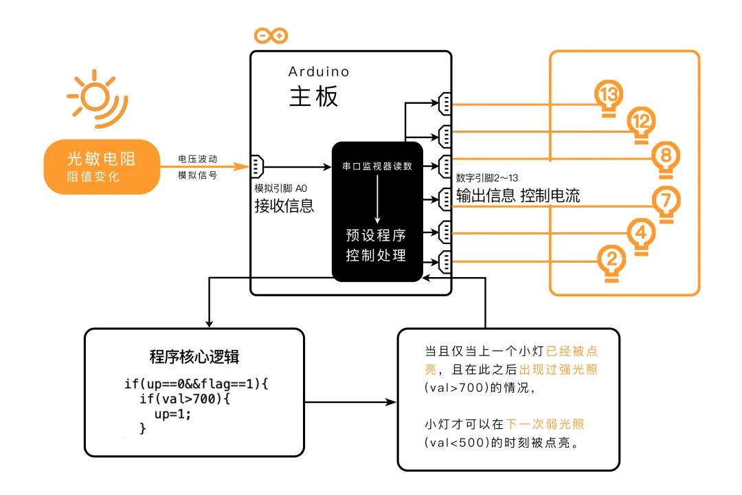 常规材料运用:arduino控制板、压力传感器、导线、LED灯、电机、光敏发声体、测温模块、发热体。