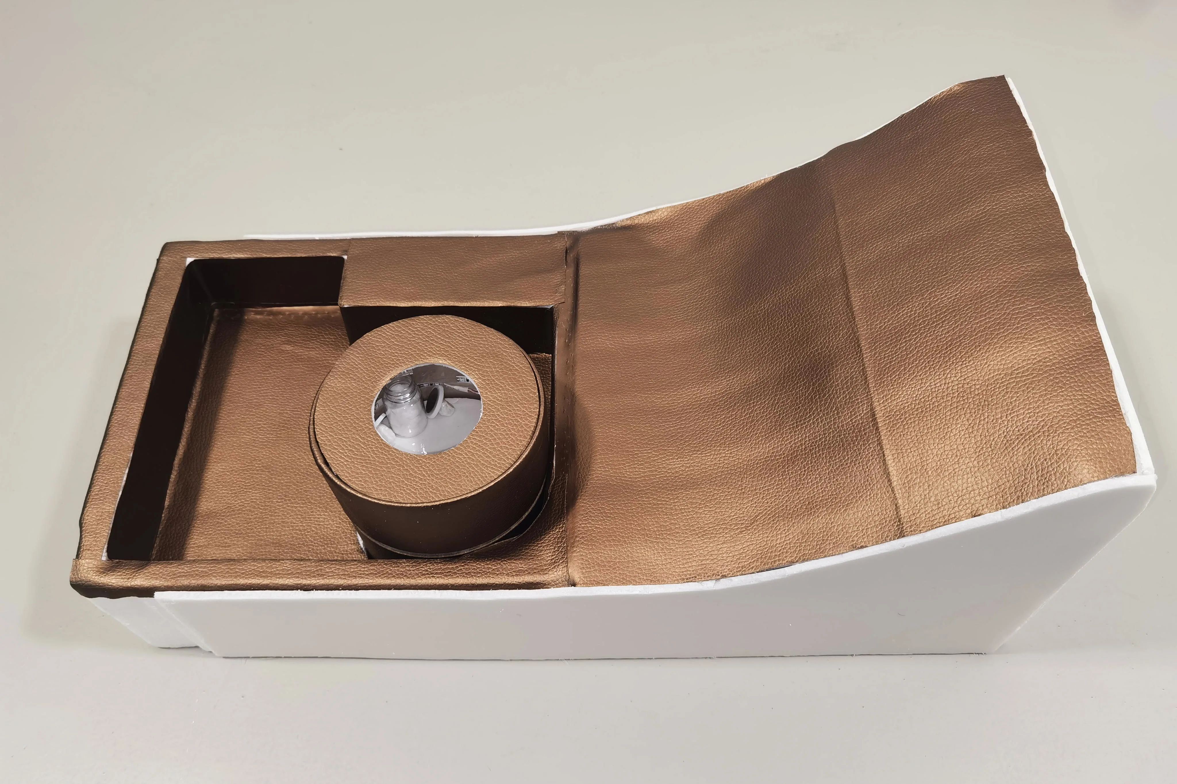 温感香氛发光杯托是一款放置于驾驶室中控台的车内装置,希望为长时间通勤的驾驶员减少疲惫感,提高旅途中短暂休息时的体验感与舒适感。