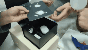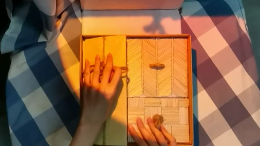 这个作品核心在于,我们通过触摸的材料质感,向用户描述产品,并且引导他们去体验这个产品。尤其是在失去视觉刺激以后,能够获得的信息有限,我们希望用户在触摸、拆解产品的过程中,就可以感受到产品的内容,同时材料质感的不同,暗示开箱后所得到的不同内容。