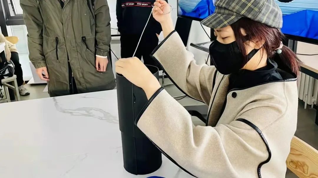 为减轻体验者的恐惧感我们放弃了闭眼体验的方式,并让体验者带上耳机,将音乐与指针转动的声音进行结合,让体验者有沉浸式的体验。