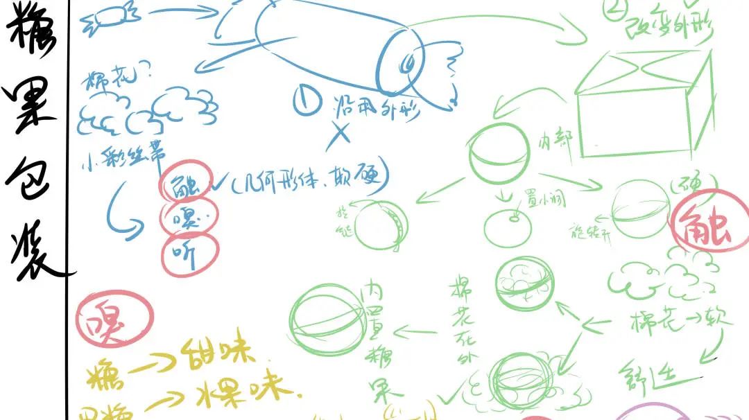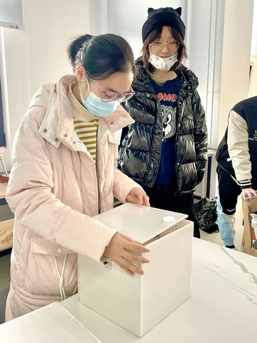 一周时间内,同学们以团队协作形式通过pressurecooker工作方法,探索将材料设计的理论知识有效运用于「盲开盒」的创意构思与方案制作中。最终带来了8段有趣的闭眼开箱体验。