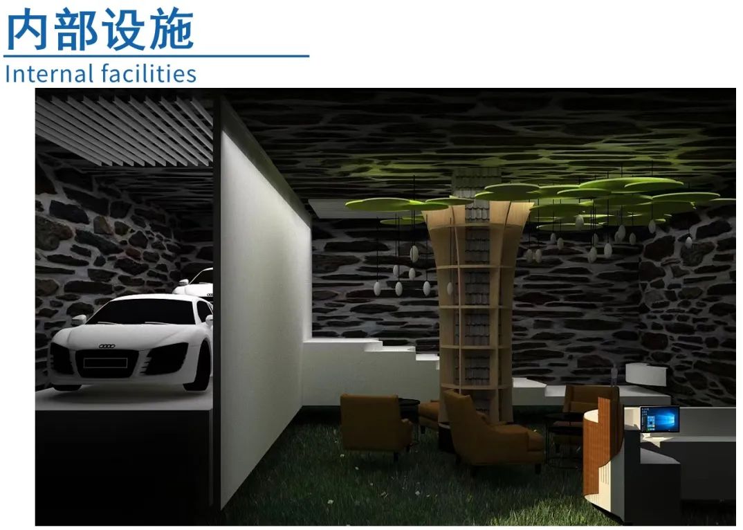 设计说明:以成语“无远弗届(界)”为主题,指不管多远之处均可到达、没有无法到达的地方。无远弗届:指展馆内的车辆;无远弗“界”:指展馆整体空间;展厅在表达人们可以到任何地方,也力求给予观者“家”的感受,拥有家的温暖。