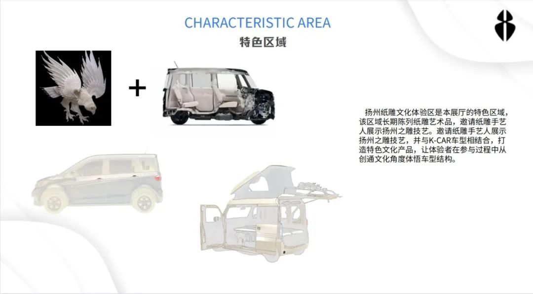 设计说明:通过纵向与横向的思考,分析了K-car汽车的特点和当前展厅发展现状,并对未来趋势进行预测,提出了“自然”和“及时性”两大核心关键词。