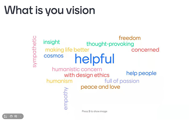 在最后的创新设计中,Tomas教授通过对未来愿景畅想的方法,让大家从中寻找小组成员都感兴趣的内容。并让大家从不同维度中进行思考,通过组内的访谈与互动完成最后创新设计。